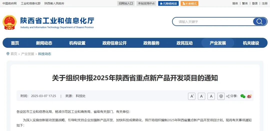 关于组织申报2025年陕西省重点新产品开发项目的通知