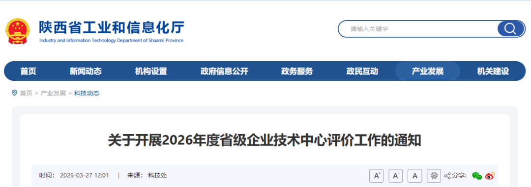 为加强省级企业技术中心动态管理,推动企业技术中心自身建设,根据《省级企业技术中心认定评价工作指南(试行)》要求,现就做好2026年度省级企业技术中心评价工作有关事项通知如下: